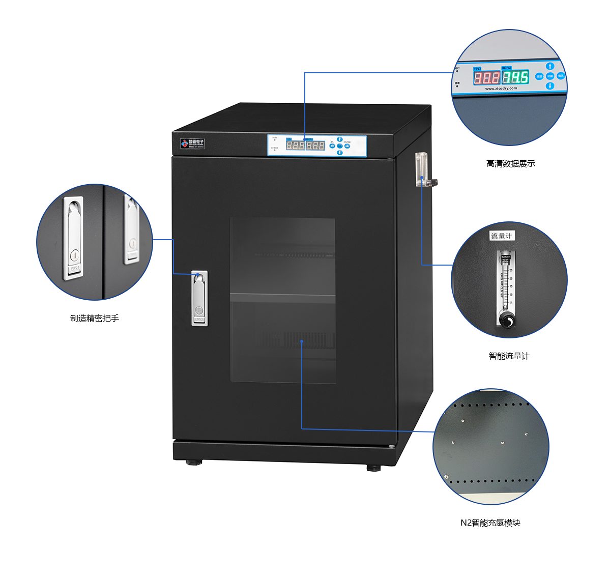 1.智能充氮:加装自动充氮系统一套后湿度达到设定值时停止充氮,反之超标则自动补充氮气,有利于快速降湿和防止半导体等器件的氧化。