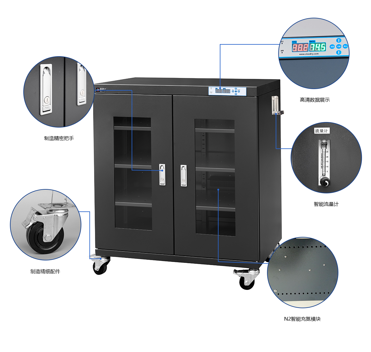 1.智能充氮:加装自动充氮系统一套后湿度达到设定值时停止充氮,反之超标则自动补充氮气,有利于快速降湿和防止半导体等器件的氧化。