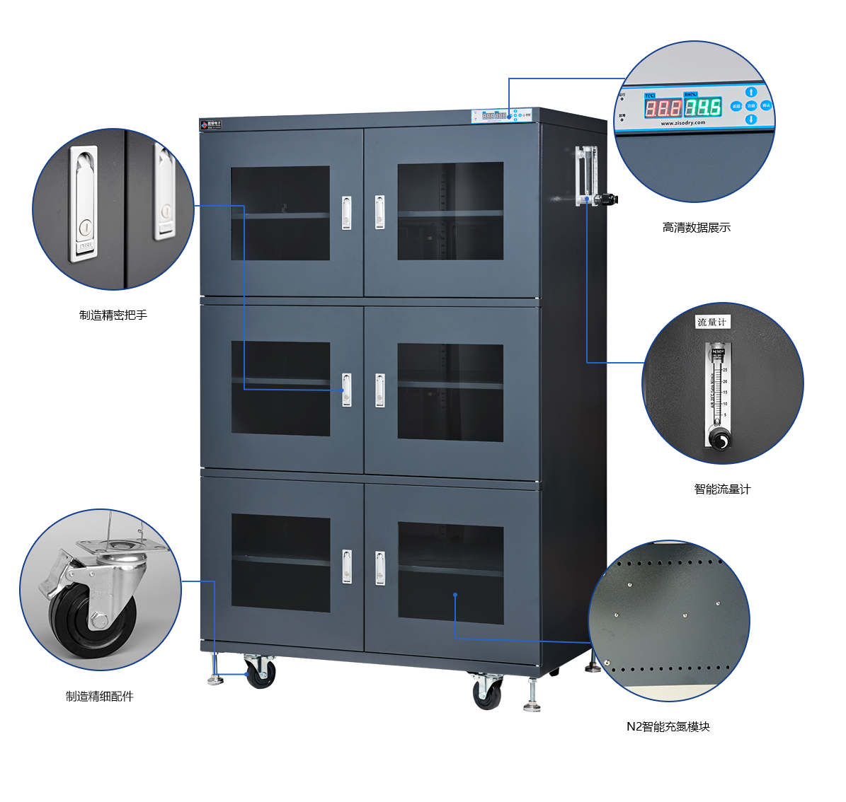 1.智能充氮:加装自动充氮系统一套后湿度达到设定值时停止充氮,反之超标则自动补充氮气,有利于快速降湿和防止半导体等器件的氧化。